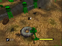 Graphics and Sound: In a word - outstanding. Cool explosions, brilliant graphics and detailed and varied environments make for an awesome gaming experience. The graphics look great and the game is very smooth. Again, you have wacky co-pilot characters and silly voice-overs, but this is all part of the Army Men appeal. Since we are dealing with a cartridge-based system, you don't have the lovely FMV's you'd find in a PSX version, but the still graphics do the job nicely. Now, in the sound department, Air Combat really shines. Each and every tune that you'll hear in this game is terrific - all very catchy and perfectly suited for the mood of the game. You'll definitely be pumped and ready for battle. The sound effects are good too. Satisfying booms and silly buzzing bugs all work together well to create the perfect atmosphere. Oh, but that Colonel Grimm who finds it necessary to continuously insult me when I screw up. I'd like to take a match to him. Yes I would. ;) Gameplay: